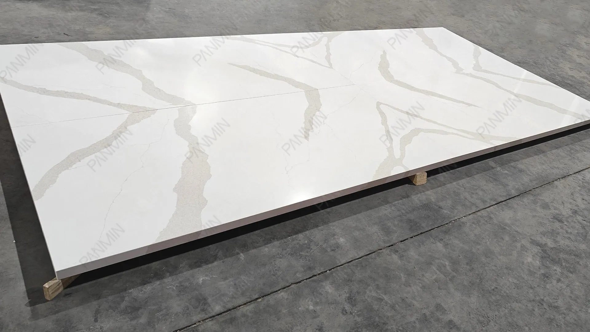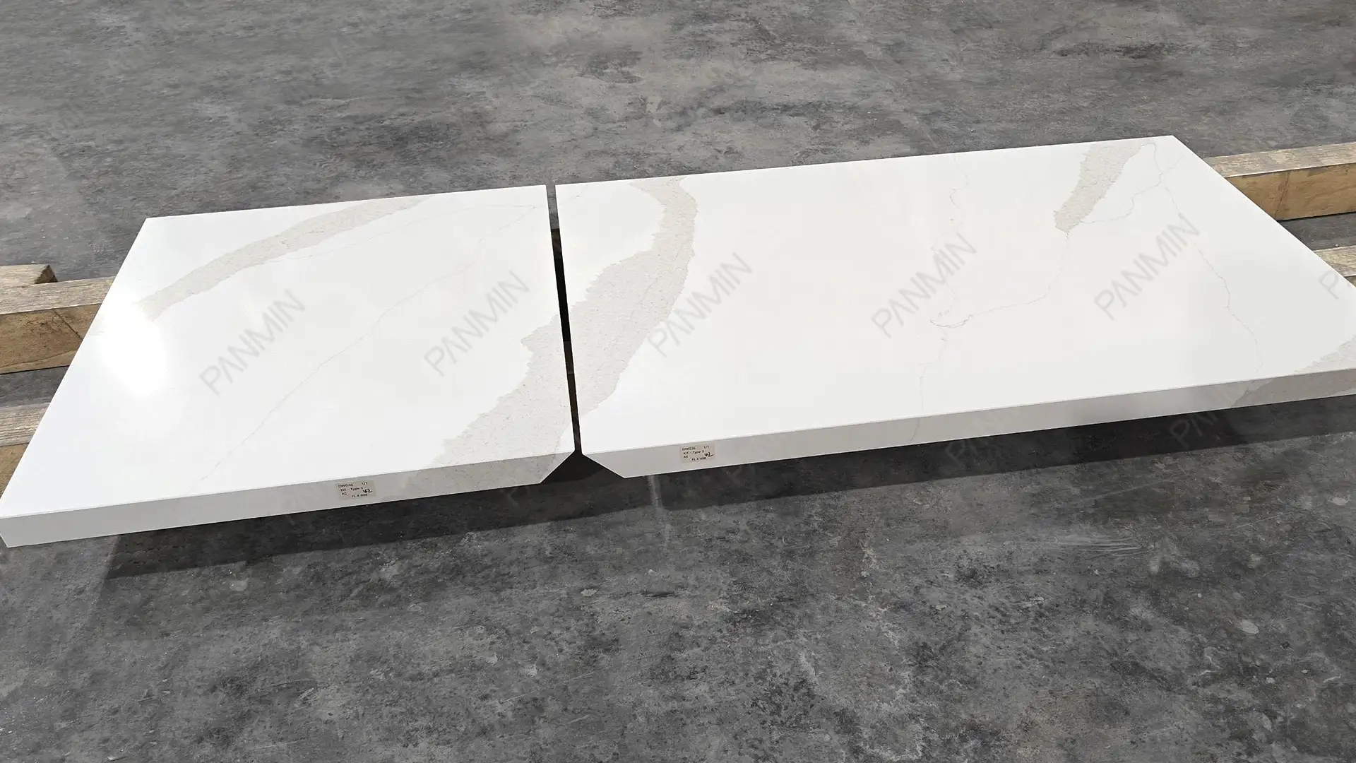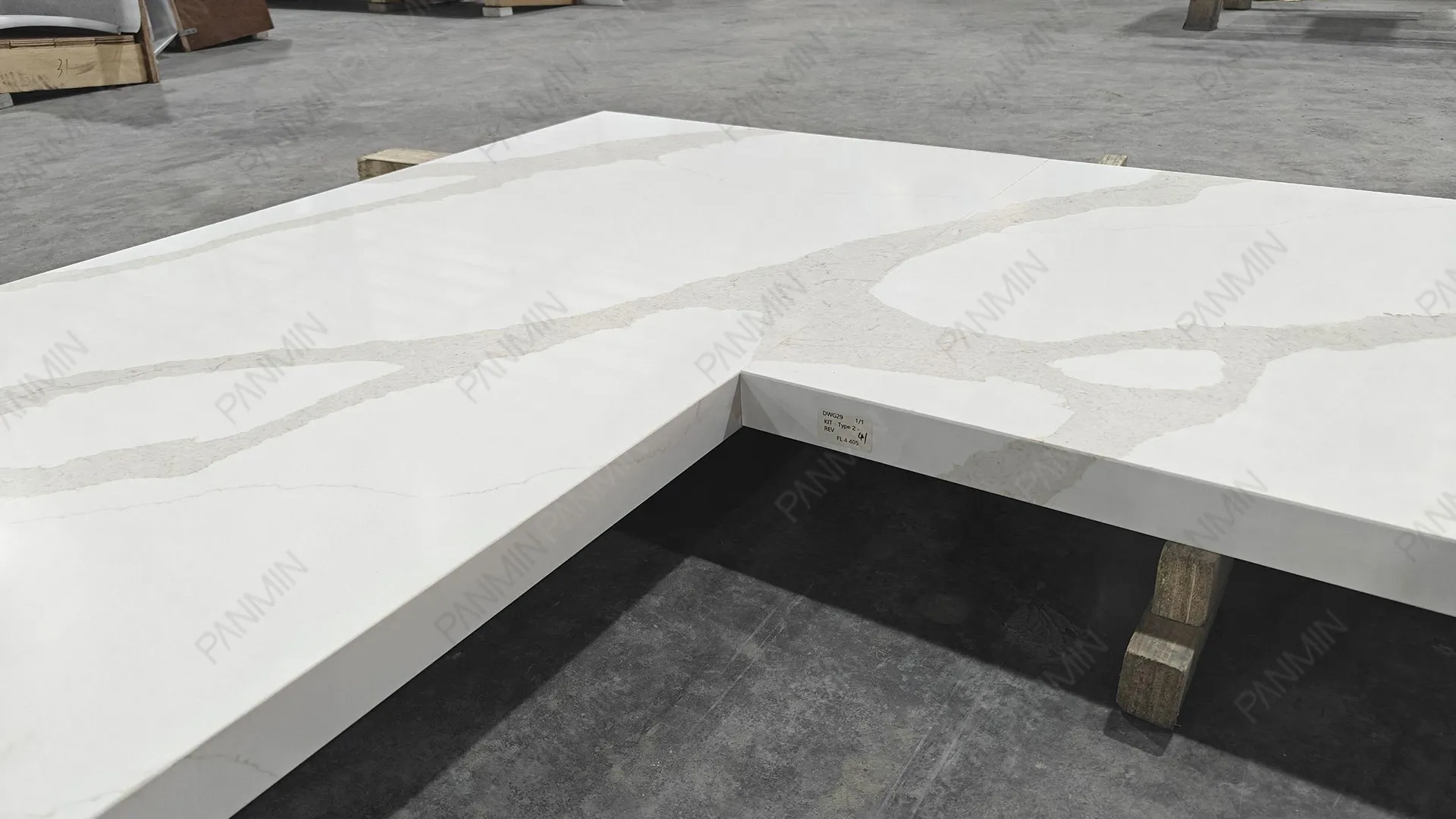 优质材料仅仅是起点。真正让住宅项目从“建造良好”升华为“建筑精益”的关键,在于对石材大板的解读与运用。在本项目中,鱼肚金石英石 PMC2798GJ 并非被视为简单的装饰表面,而是被视为一种结构化的设计语言。在我们的石英石工厂,每一块大板在切割前都经过严格审核。通过分析纹理走向、律动强度和过渡区域,确保最终安装效果呈现为统一的构图,而非零散组件的堆砌。