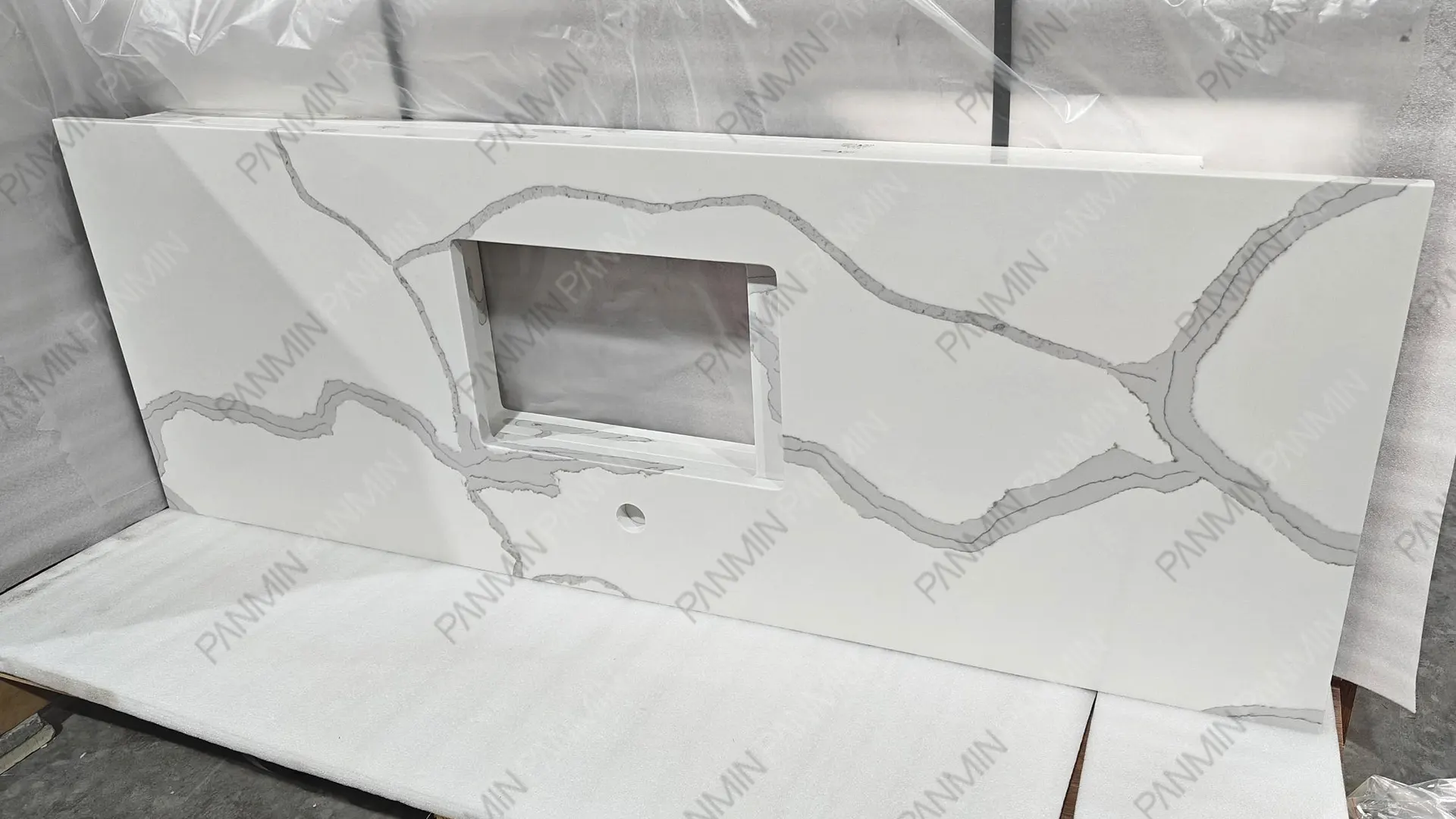 作为一款鱼肚白石英石,PMC1017GJ 具备低维护、耐用可靠的优势,其纯净的白色基底与自然灰色纹理为空间增添恰到好处的高级感。在酒店环境下,台面需经受高频次的日常使用,因此必须保持易于维护且视觉上洁净如新。